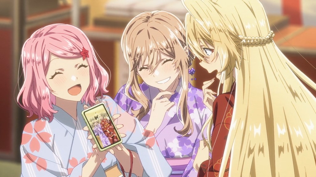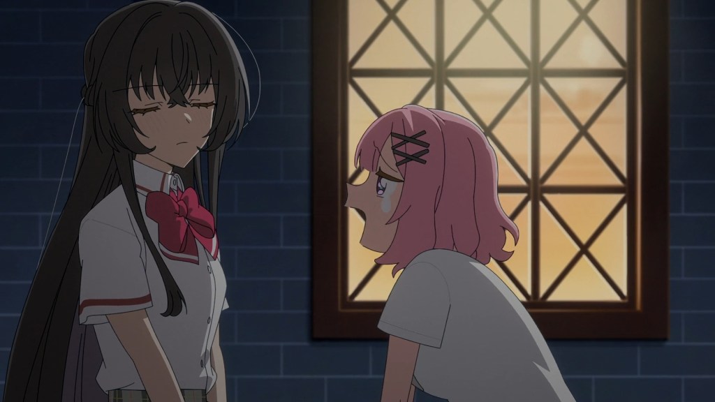 With Satsuki introduced though the show enters it’s final thrust because there’s only two choices for Renako and we’re not wrapping up before she can decide. It’s a hard choice too, or it would be if things weren’t so clear. Ajisai Sena’s main arc is all fluffy adorableness, affirming that she has fallen just as far for Renako as Mai did but without the red flags and it becomes almost sickeningly sweet watching the two run away together for a long and fruitful date. When Mai crashes into the party it also changes her because suddenly she sees the girl she loves happy without an asterisk and realizing the error of her ways she sees herself out, committed to letting this pairing run it’s course without her.