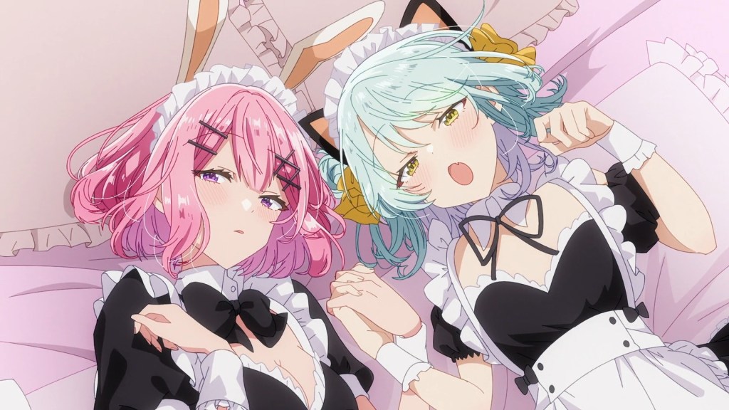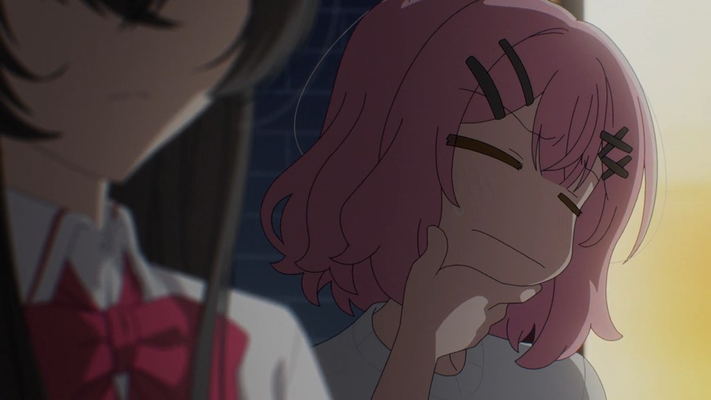 The Renako and Ajisai ship is like a puppy, pure overwhelming blissful mutual love between the two absolute cutest anime girls this decade. This anime very well could’ve pivoted to just them, abandoning the messiness of Renako’s previous entanglements and the spice of the harem setup. But that wouldn’t actually be as healthy as it seems nor would it solve the emotional thrust of this entire series because with Ajisai Renako gets to abandon her worries and just win win win, hellbent on landing this angel she puts on a pedestal who accepts her entirely. Renako Amaori deserves this mutual and consensual love but Renako Amaori needs to solve her own issues first and while it took me off guard a bit this show has the chops to realize it, eventually. S1’s 12 episodes honestly aren’t worth the deep dive substantially, this is average romcom writing at best carried by the overwhelming cuteness of it’s shiny veneer and quirky personality that gets consistent laughs outta me, my favourite being the running joke that Renako’s looks are average at best. Friends I hope I don’t need to explain how that joke, rooted in usual harem tropes of a self insert basic mc don’t stand in this show where our mc looks can be compared to Chika Fujiwara. Like I know looks are personal taste but I feel the thicc in all the right places, pink haired, short queen with a thousand adorable faces has a higher average appeal than the skinny and tall almost bishounen styled designs of Mai and Satsuki. They’re definitely gorgeous in their own right especially so for Satsuki but brother this joke absolutely sends me like the dissonance is crazy. Renako’s gamer brain means she’s always making cringe references and her constant form shifting gives her extravagant comedic potential maximized by the lavish art and have I mentioned yet that Kanna Nakamura is the best, because she’s the best. But in the end yeah, this story was appealing but not mind blowing, I never intended to write about it and even now I struggle to care about the big picture of this season. But wait, there’s more!