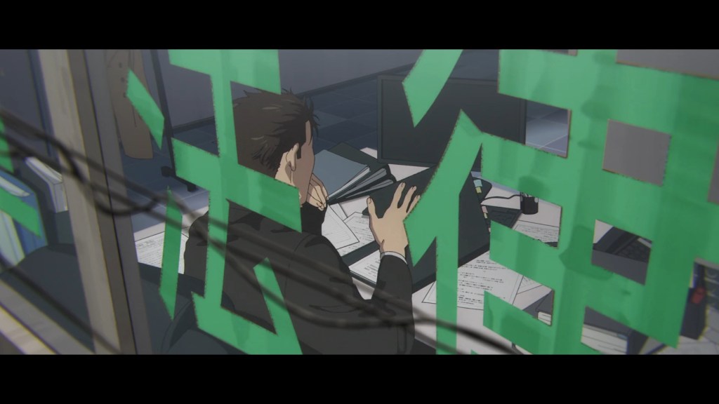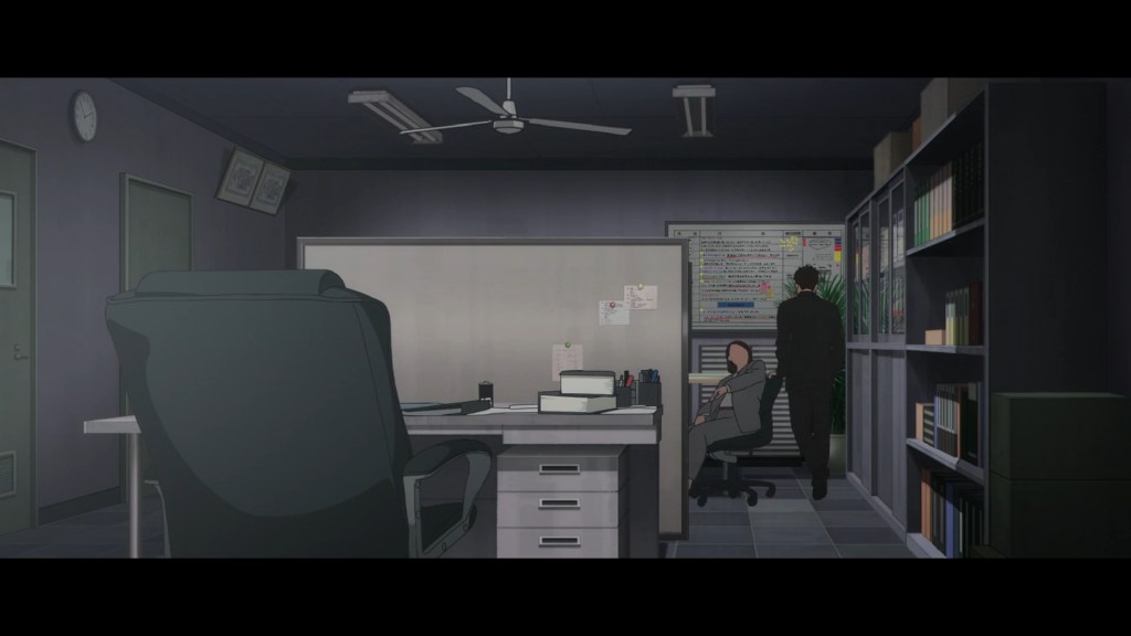 Everything about the episode’s story and direction are served by his singular animation prowess as his acting make’s every single character and movement feel so casually real, from the way a suspect desperately runs from the police to how Higuruma playfully spins his assistants chair as they talk, it is all so simply human and living and normal, if animation of this caliber could ever be considered normal. As I write this a debate is going on about how real this animation actually is as nobody seems confident to declare that rotoscoping was or wasn’t used. Kouki Fujimoto is credited for acting reference in the episode alongside a parter and to my eye’s it seems pretty obvious that he indeed rotoscoped, the aforementioned cut of Higuruma spinning his assistant just screams this technique but the simple fact that this is debatable say’s enough really, whether rotoscoped or reference Kouki Fujimoto‘s animation is so good that you kinda just believe he can do all this extremely specific work himself. If it get’s confirmed that he indeed is just that good than man I don’t even know what I’d think other than being thankful he was given the time to truly live in his craft for an entire episode.