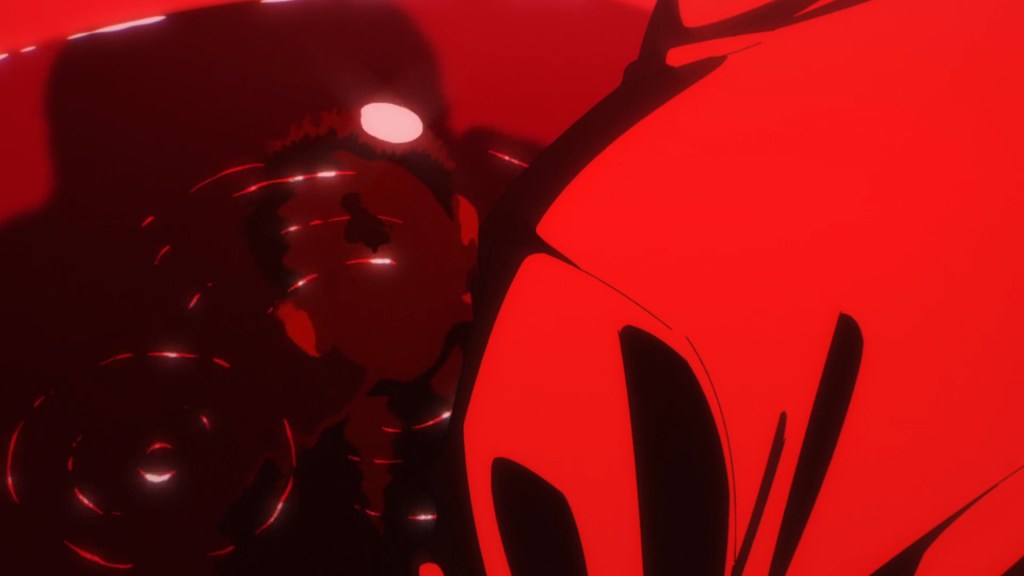 This is visually speaking the most grounded episode of JJK period whilst still having an artful pop to the color design, even in the grimmest of grays and whites. The carefully composed and paced rigidity of the direction feels suitably exhausting before giving way to a theatrical finish when the cinema that Higuruma and Itadori meets in starts to project crimson and green, drowning them both in exaggerated color and shadow as the animation turns very specifically anime in it’s thrashing dying moments. As a piece of art this is the most robust an anime episode can be, every element so perfectly cohesive to director Takeda’s vision who in turn has brought the manga to life. He did a fantastic job as the first person to follow in Gosso’s footsteps this season but just as enthusiastically he was not the star of this episode. It’s time we talk about why this episode’s production was truly special, it’s time we bring in Article 3.
